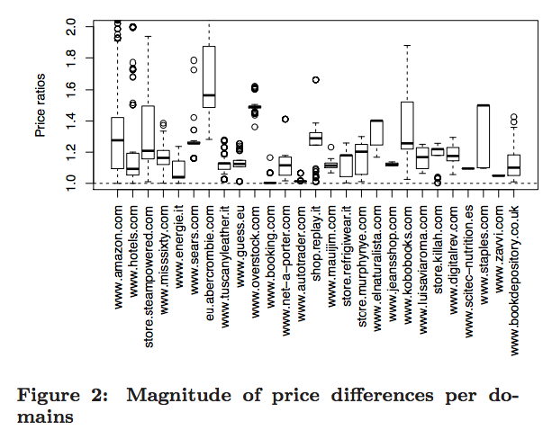 An exact example of personalized pricing: not all users get the same prices. [data collected via the Sheriff tool in 2016]