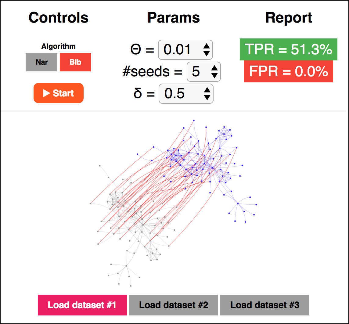 In our recent paper, we proposed a novel social network de-anonymization attack, which had pretty nice results when compared with others. I made a program, where the original attack and ours can be tested out, directly in the browser. This means that you can run re-identification attacks even on your smartphone… :) Check it out: