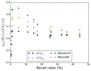 In the high recall region this simple MLP-based prediction approach proved to be better than all previous ones. While for the simulation of weak attackers (i.e., small recall, where perturbation overlaps are small), random forests obviously are the best choice. You can grab the new code here (you will also need the datasets from here).